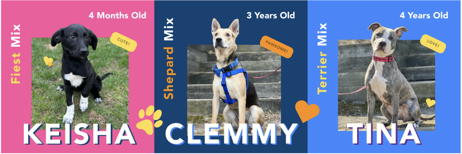 We then began to think of what the adoption posts will look like. We wanted to truly showcase the dogs and their adoptability. We kept the same concept of the framed pictures that you saw under the company’s current adoption photos, but elevated them just a bit. We wanted them to look more dynamic and interesting to look at.