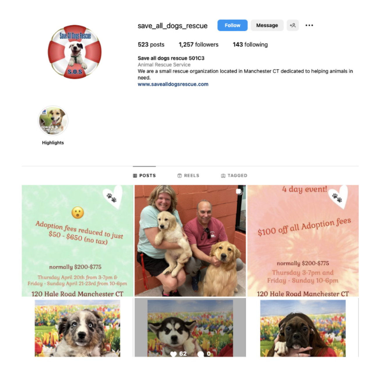Save All Dogs Animal Rescue needed to update their social media posts and presence so that they can have more traffic to their pages and ultimately get more cats and dogs adopted.